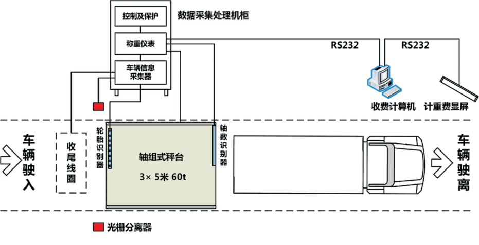 ■ 能對車輛進(jìn)行自動(dòng)分離,能檢測車輛的軸數(shù)、軸組、軸重及整車重量。